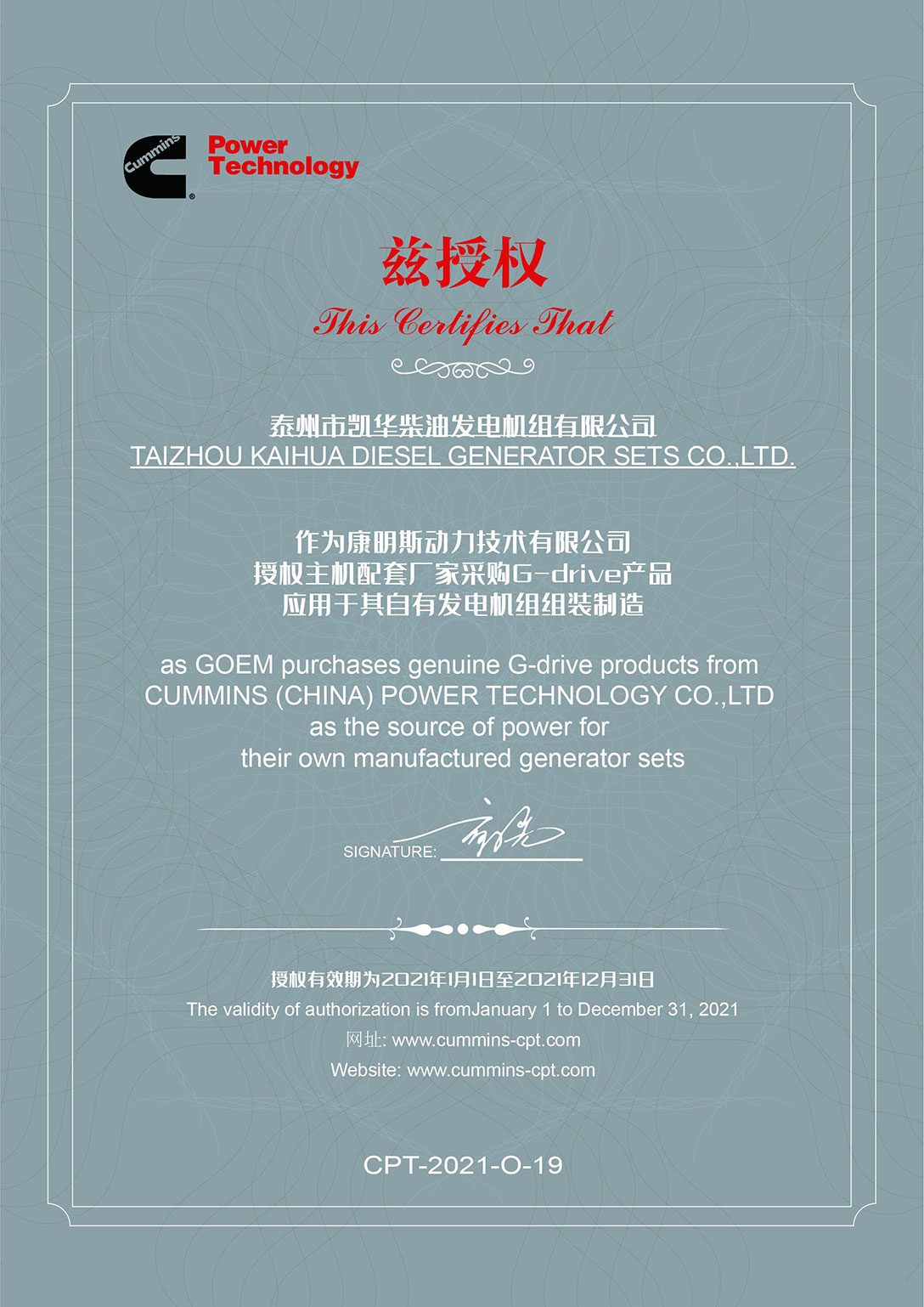 泰州市凱華柴油發(fā)電機(jī)組有限公司創(chuàng)建于2003年,是一家集柴油發(fā)電機(jī)組燃?xì)獍l(fā)電機(jī)組的研發(fā)、生產(chǎn)、銷(xiāo)售為一體的高新技術(shù)民營(yíng)企業(yè),公司座落于“漢唐古郡,淮海名區(qū)”,具有“鳳凰城”美稱(chēng)的祥泰之州——江蘇省泰州市,地處中國(guó)經(jīng)濟(jì)最發(fā)達(dá)的長(zhǎng)三角經(jīng)濟(jì)圈,水陸空立體交通,地理位置十分優(yōu)越。公司目前注冊(cè)資本金11800萬(wàn)元人民幣,生產(chǎn)基地占地六十畝,現(xiàn)有各類(lèi)高素質(zhì)員工一百多名,專(zhuān)業(yè)技術(shù)人員達(dá)46人,其中高級(jí)技術(shù)人員16人,年銷(xiāo)售額近6億元。 公司主營(yíng)產(chǎn)品:3~3000KW陸用柴油發(fā)電機(jī)組,15~600KW移動(dòng)拖車(chē)電站,12~1000KW船用應(yīng)急柴油發(fā)電機(jī)組,各種靜音型、中高壓、多機(jī)并聯(lián)、燃?xì)獾忍胤N機(jī)組以及進(jìn)口系列柴油發(fā)電機(jī)組,可滿足不同客戶的一切電力需求,還可滿足用戶不同電壓、不同頻率的要求。凱華公司是康明斯品牌的授權(quán)代理商,專(zhuān)業(yè)生產(chǎn)供應(yīng)康明斯柴油發(fā)電機(jī)組。
